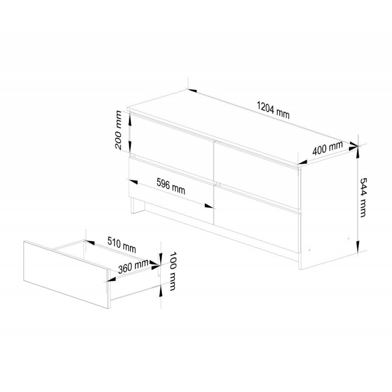 Komoda KIPS je jednoduchý a minimalistický kus nábytku. Skvěle se bude hodit do pokojů s moderním interiérem, kde převládají světlé barvy. Materiál komody tvoří otěruvzdorná laminovaná deska o tloušťce 16 mm a hrany, které jsou pokryty ABS hranami, díky čemuž jsou odolné proti poškození. Komoda je vybavena čtyřmi zásuvkami a každá z nich se pohybuje na kovových kolejnicích - tento mechanismus funguje hladce a bezchybně.