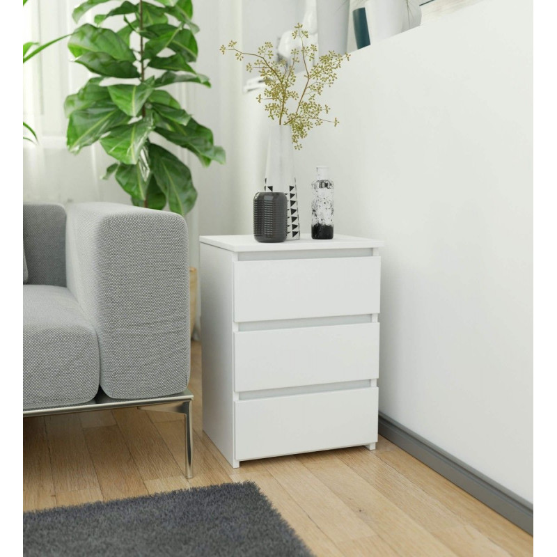 Tři prostorné zásuvky vám umožní uspořádat vaše nejdražší poklady tak, jak vám nejlépe vyhovuje. Komoda má ideální velikost například jako noční stolek. Nahoru můžete položit lampu a dovnitř uschovat knihu či kosmetické produkty. Skvěle se bude hodit i na drobnosti do obývacího či dětského pokoje. A co ještě víc, pohyb zásuvky na kovových válečkových vodítkách je tak hladký, že se budete cítit jako v luxusním hotelu.
