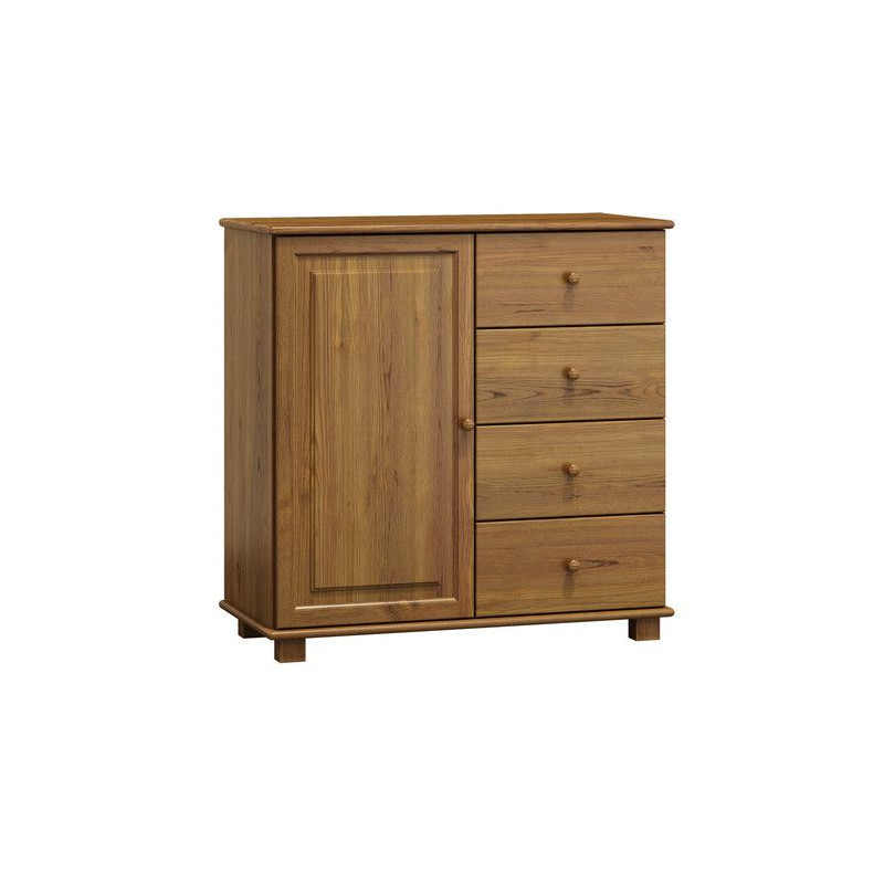 Komoda KN48 100x47 cm. Komoda je vyrobena z borovicového dřeva, které zaručuje odolnou konstrukci. Ergonomický tvar umožňuje efektivně udržovat v uložených věcech pořádek. Zásuvky se vysouvají s lehkostí a zvyšuj...