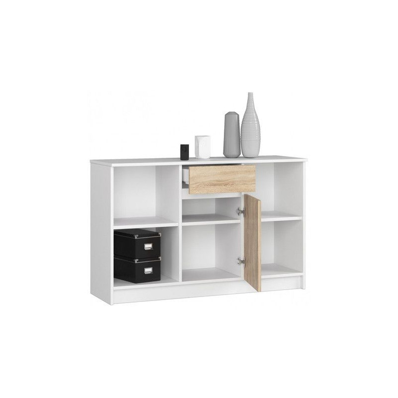 Produkt Částečně otevřená skříňka komoda do obýváku / kanceláře / pracovny, bílá + dub sonoma, 120x77x40 cm je v kategorii Komody 120 cm, ve které si můžete vybrat i další podobné zboží. Více informací a fotografií najdete na eshopu prodejce sg-nabytek.cz, kde si můžete zboží také objednat. Na detail tohoto produktu přejdete stiskem tlačítka "Do obchodu sg-nabytek.cz" umístěného níže.