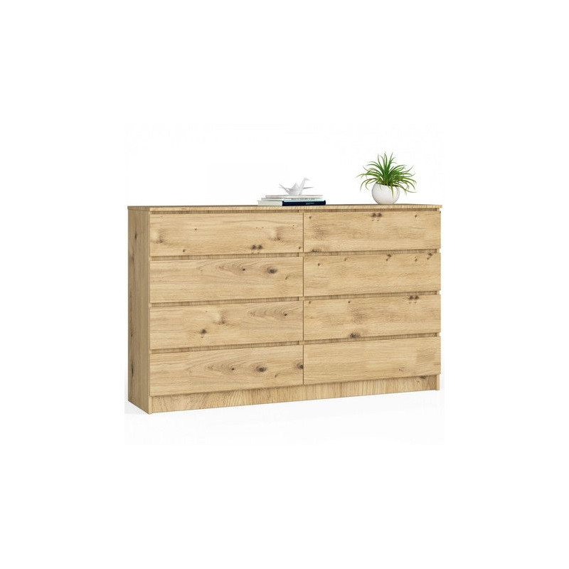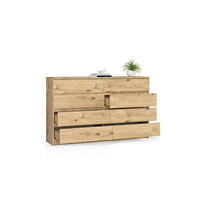 Komoda K160 8SZ. Kdo by nesnil o pevné, elegantní a funkční komodě. Jedná se o oblíbený kus nábytku, který v naší nabídce nemohl chybět. Nábytek vypadá vizuálně zajímavě, hodí se tak do obývacího pokoje, ložnice, obývacího pokoje nebo předsíně. Údržba: Povrch nábytku otírejte vlhčeným hadříkem. Vyhněte se použití chemikálií.