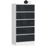 Produkt Skříňka šuplíky úzká grafitová lesklá / bílá na ponožky, čepice, šály, rukavice, 60x121x40 cm je v kategorii Komody 60 cm, ve které si můžete vybrat i další podobné zboží. Více informací a fotografií najdete na eshopu prodejce sg-nabytek.cz, kde si můžete zboží také objednat. Na detail tohoto produktu přejdete stiskem tlačítka "Do obchodu sg-nabytek.cz" umístěného níže.