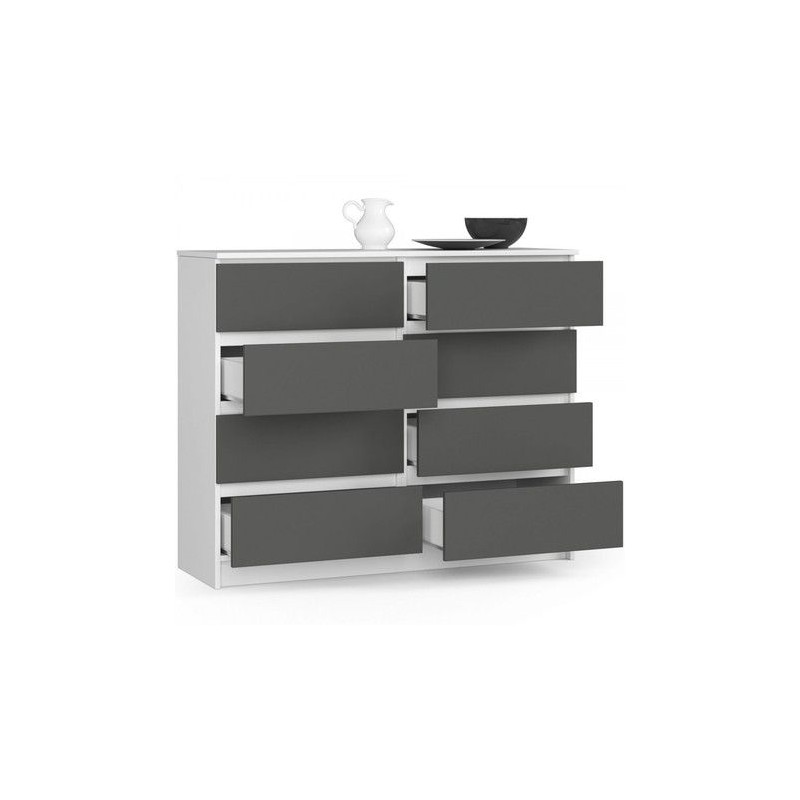 Komoda K120 8SZ. Kdo by nesnil o pevné, elegantní a funkční komodě. Jedná se o oblíbený kus nábytku, který v naší nabídce nemohl chybět. Nábytek vypadá vizuálně zajímavě, hodí se tak do obývacího pokoje, ložnice, obývacího pokoje nebo předsíně. Údržba: Povrch nábytku otírejte vlhčeným hadříkem. Vyhněte se použití chemikálií.