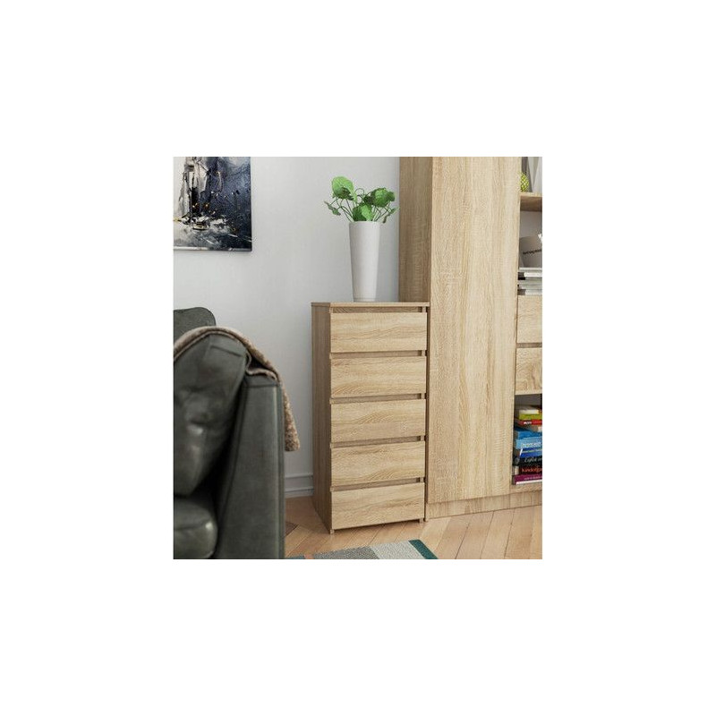 Komoda CL5 - dub sonoma. Jednoduchá a moderní komoda. Je vyrobená z pevné laminované desky, která je odolná proti oděru a poškození. Univerzální vzhled splní očekávání každého, kdo ocení kombinaci jednoduchosti a elegance. Bezúchytková čela zásuvek zajišťují pohodlné používání. - použití kvalitních materiálů - zajímavé provedení - snadná montáž Údržba: Povrch nábytku utřete do čista měkkým hadříkem. Vyhněte se použití chemikálií.
