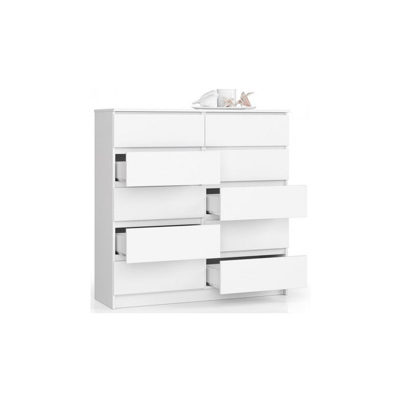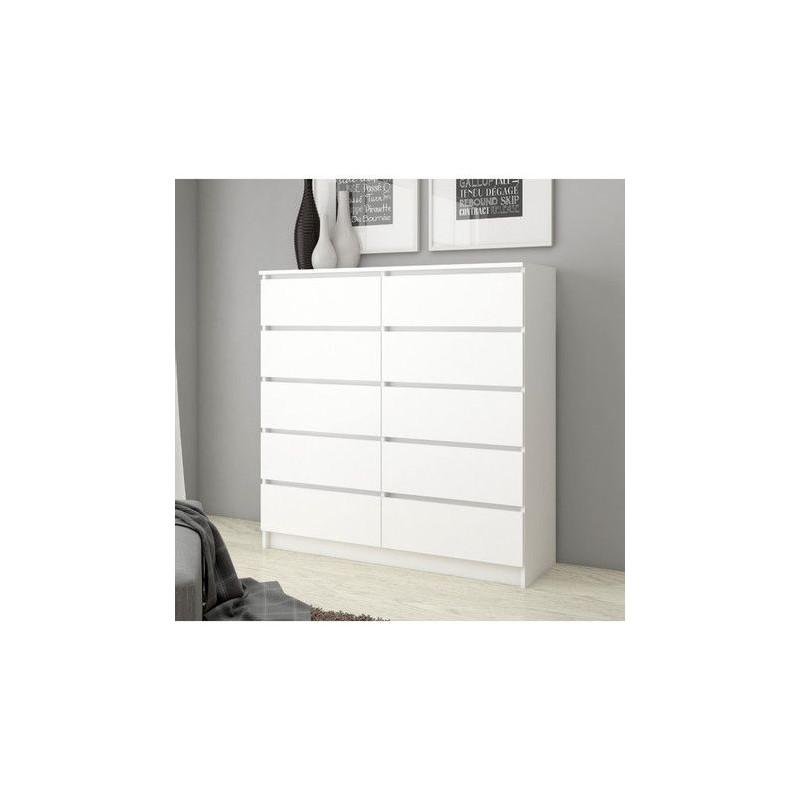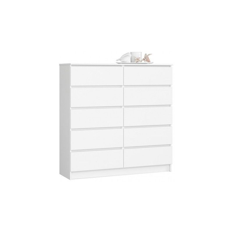 Jednoduchá a moderní komoda K120 10SZ. Je vyrobená z pevné laminované desky, která je odolná proti oděru a poškození. Univerzální vzhled splní očekávání každého, kdo ocení kombinaci jednoduchosti a elegance. Bezúchytková čela zásuvek zajišťují pohodlné používání. - použití kvalitních materiálů - zajímavé provedení - snadná montáž Údržba: Povrch nábytku utřete do čista měkkým hadříkem. Vyhněte se použití chemikálií.