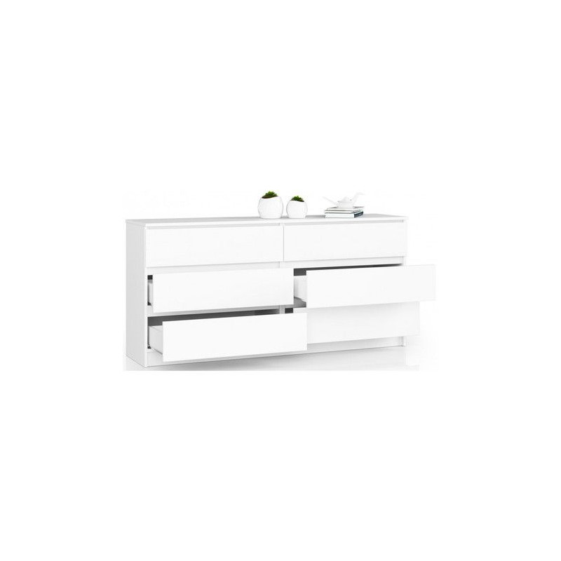 Jednoduchá a moderní komoda K160 6SZ. Je vyrobená z pevné laminované desky, která je odolná proti oděru a poškození. Univerzální vzhled splní očekávání každého, kdo ocení kombinaci jednoduchosti a elegance. Bezúchytková čela zásuvek zajišťují pohodlné používání. - použití kvalitních materiálů - zajímavé provedení - snadná montáž Údržba: Povrch nábytku utřete do čista měkkým hadříkem. Vyhněte se použití chemikálií.