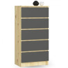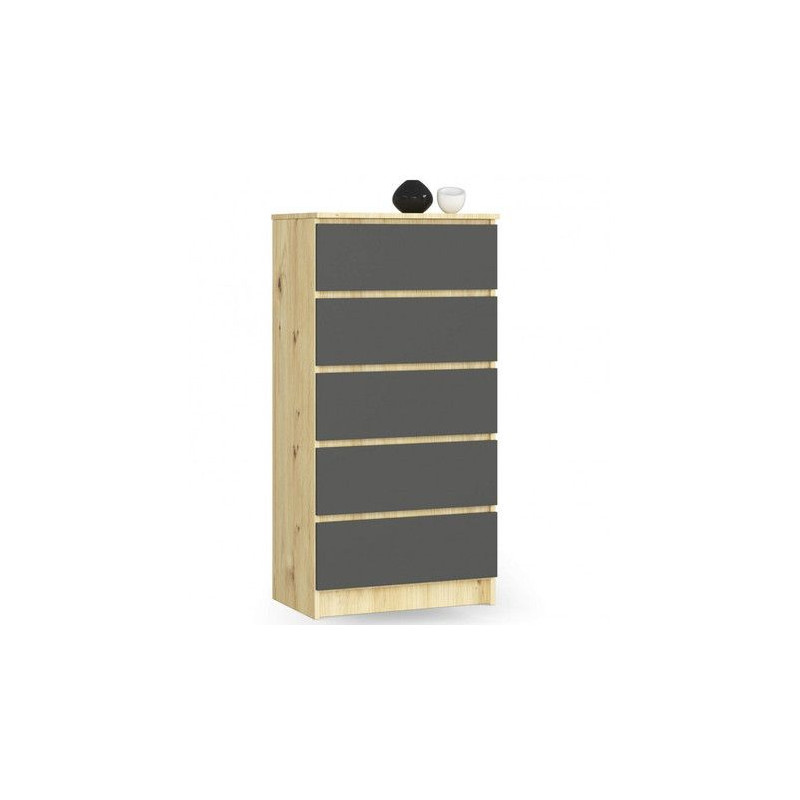 Jednoduchá a moderní komoda K60 5SZ. Je vyrobená z pevné laminované desky, která je odolná proti oděru a poškození. Univerzální vzhled splní očekávání každého, kdo ocení kombinaci jednoduchosti a elegance. - pou...