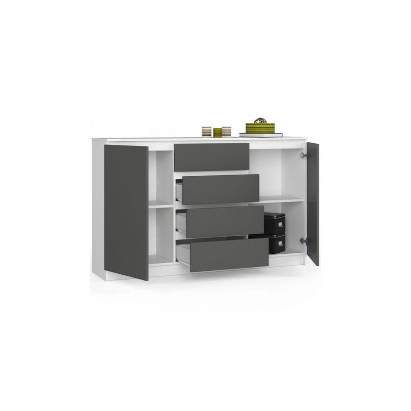 Produkt Skříňka komoda šířka 140 cm kombinovaná - šuplíky + dveře, bílá / grafitově šedá, 138x99x40 cm je v kategorii Komody 140 cm, ve které si můžete vybrat i další podobné zboží. Více informací a fotografií najdete na eshopu prodejce sg-nabytek.cz, kde si můžete zboží také objednat. Na detail tohoto produktu přejdete stiskem tlačítka "Do obchodu sg-nabytek.cz" umístěného níže.