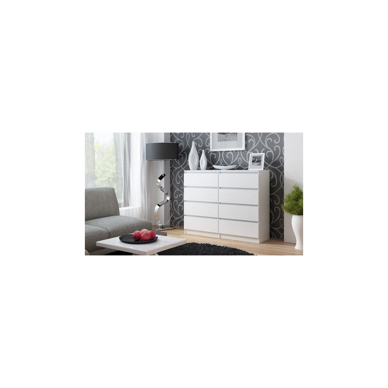 Jednoduchá a moderní komoda Malva 120 cm. Je vyrobená z pevné laminované desky, která je odolná proti oděru a poškození. Univerzální vzhled splní očekávání každého, kdo ocení kombinaci jednoduchosti a elegance. Bezúchytková čela zásuvek zajišťují pohodlné používání. - použití kvalitních materiálů - zajímavé provedení - snadná montáž Údržba: Povrch nábytku utřete do čista měkkým hadříkem. Vyhněte se použití chemikálií.