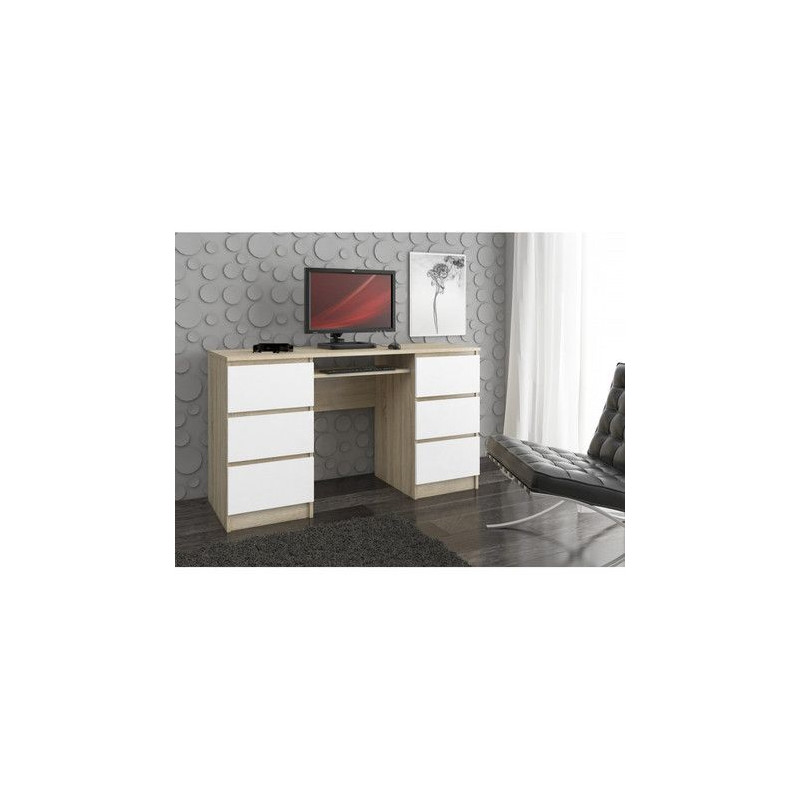Počítačový stůl A-11. Jednoduchý stůl v moderním barevném provedení. Stůl je vhodný do kanceláře i do dětského pokoje. Využití najde při práci s počítačem i při psaní domácích úkolů. Díky své velikosti se dobře vejde i do menších prostor. - jednoduchý a moderní design vytváří příjemný pracovní prostor - hladké boky - 6 zásuvek - zásuvky a police na klávesnici se pohybují na kovových válečkových vodítkách - snadná montáž Údržba: Povrch nábytku utřete do čista měkkým hadříkem. Vyhněte se použití chemikálií. Foto je pouze ilustrační.