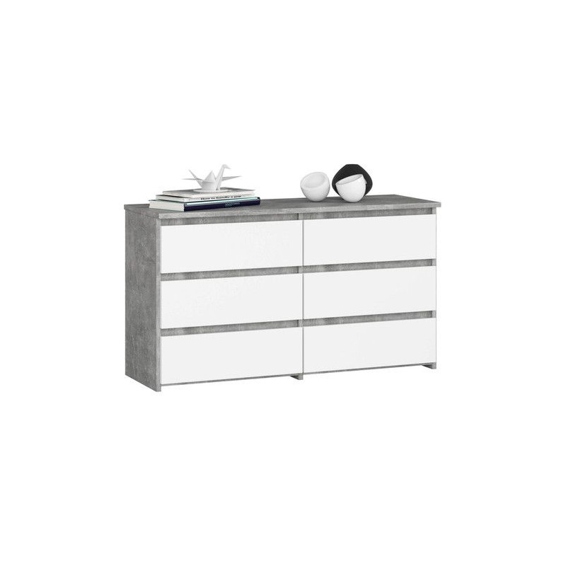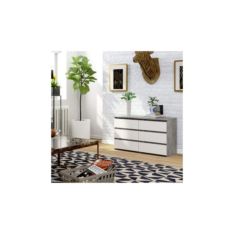 Komoda CL100 6SZ - beton/bílá. Jednoduchá a moderní komoda. Je vyrobená z pevné laminované desky, která je odolná proti oděru a poškození. Univerzální vzhled splní očekávání každého, kdo ocení kombinaci jednoduchosti a elegance. Bezúchytková čela zásuvek zajišťují pohodlné používání. - použití kvalitních materiálů - zajímavé provedení - snadná montáž Údržba: Povrch nábytku utřete do čista měkkým hadříkem. Vyhněte se použití chemikálií.