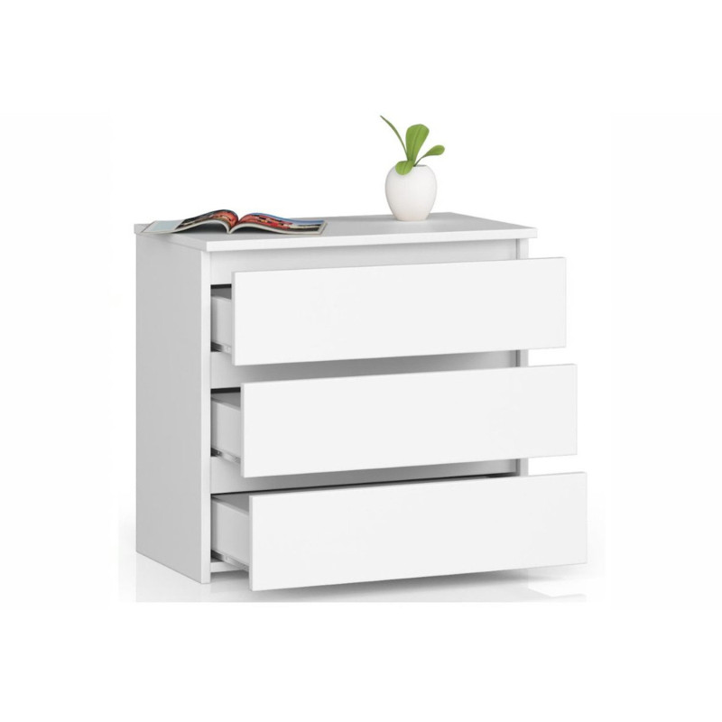 Komoda CL3 60 cm. Stolek je vybaven třemi prostornými zásuvkami. Můžete je využít například na odkládání šperku, knížek nebo jiných drobností. - použití kvalitních materiálů - elegantní provedení - snadná montáž - prostorné zásuvky poskytující úložný prostor Údržba: Povrch nábytku otírejte vlhčeným hadříkem. Vyhněte se použití chemikálií.