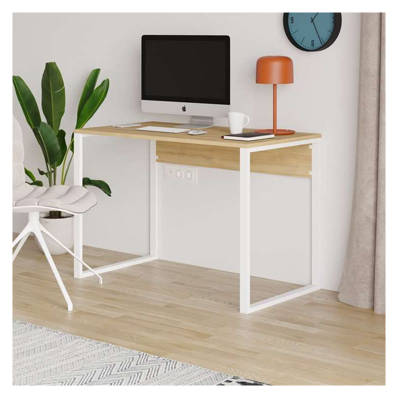 Produkt Levný psací stůl s kovovou konstrukcí 110x60 cm dub safírový / bílá, do pracovny / dětského pokoje / obýváku je v kategorii Psací stoly, ve které si můžete vybrat i další podobné zboží. Více informací a fotografií najdete na eshopu prodejce houseland.cz, kde si můžete zboží také objednat. Na detail tohoto produktu přejdete stiskem tlačítka "Do obchodu houseland.cz" umístěného níže.