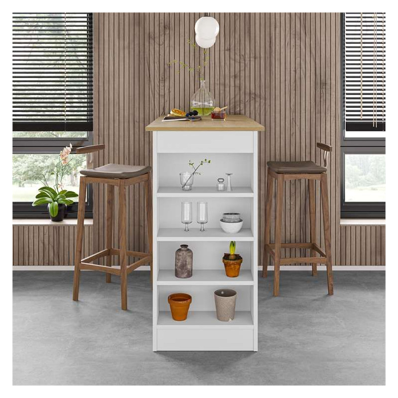 Produkt Vysoký barový stůl s policí do kuchyně / restaurace / hotelu / penzionu, dub safírový + bílá, 117x102x54 cm je v kategorii Barové stoly, ve které si můžete vybrat i další podobné zboží. Více informací a fotografií najdete na eshopu prodejce houseland.cz, kde si můžete zboží také objednat. Na detail tohoto produktu přejdete stiskem tlačítka "Do obchodu houseland.cz" umístěného níže.