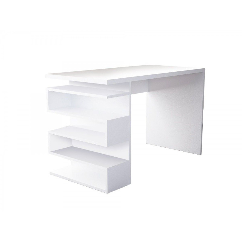 Psací stůl ze série Snake nabízí elegantní design. Je dokonalým řešením pro domácí pracovny a také pokoje pro mládež. Boční úložný prostor lze využít k odložení všech potřeb, které chcete mít vždy po ruce, nebo také k vystavení dekorací. Použitá melaminová nábytková deska dodává stolu dostatečnou odolnost proti mechanickému poškození. Jako celek působí velice estetický a praktický.