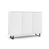 Elegantní linie a kompaktní rozměry dělají z této komody praktický úložný prostor, aniž by působila mohutně nebo těžkopádně. Na čelní straně najdete tři prostorné zásuvky a dvě dvířka, za nimiž se ukrývají vnitřní police. Všechny zásuvky jsou osazené kovovými kuličkovými pojezdy, které zajišťují hladký a tichý chod i při častém používání.