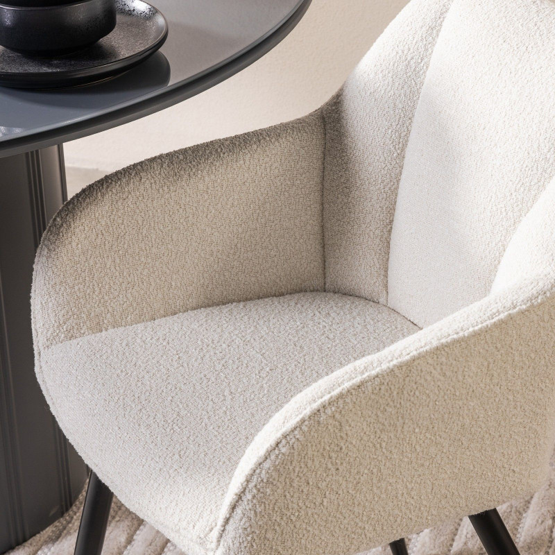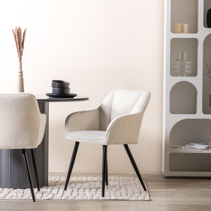 Představuje ideální volbu pro ty, kteří hledají praktický i dekorativní prvek do svého interiéru. Čalounění v krémové boucle látce dodá místnosti na nedbalé eleganci i jemnosti, kterou doplňují minimalistické kovové nohy. Hodi se do různých interiérových aranžmá a stane se klenotem každé kuchyně!