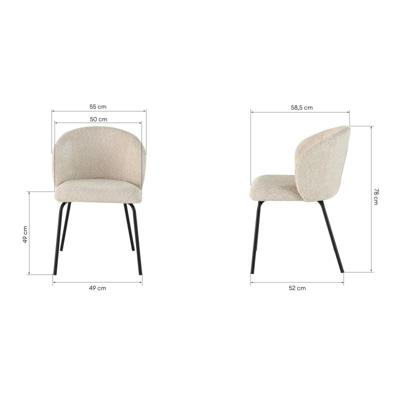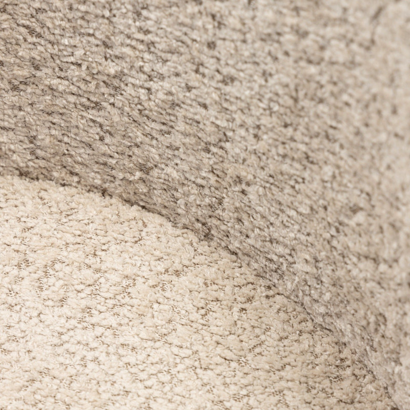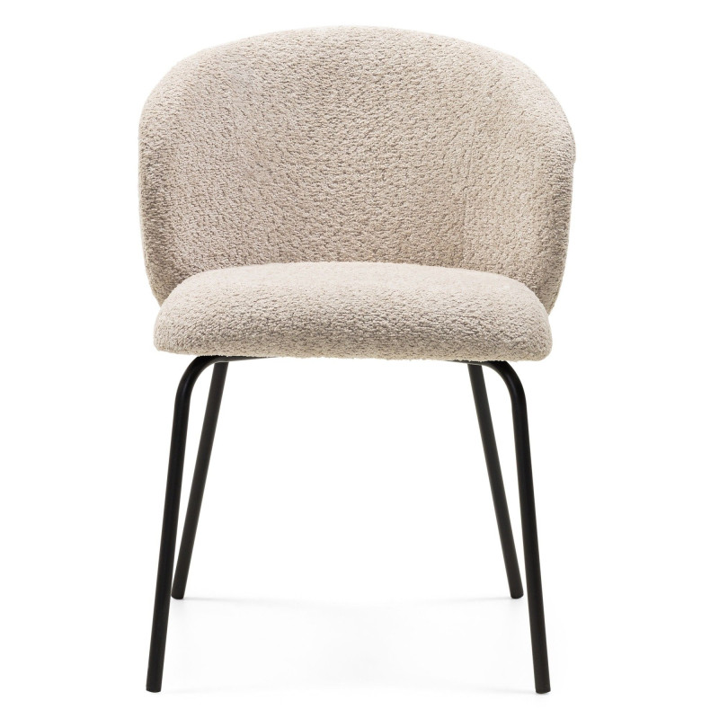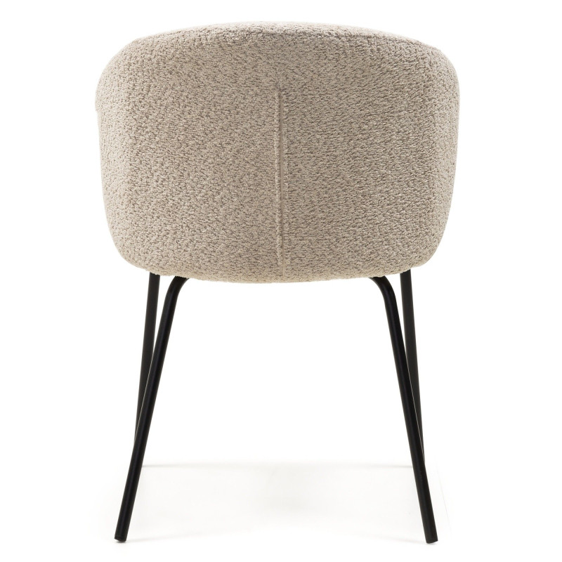 Na vysokém pohodlí se podílí zejména měkký sedák a zaoblené opěradlo. Pro čalounění byla použita látka bouclé s charakteristickými smyčkami. Béžová barva je univerzální a židle tak získává schopnost snadno zapadnout do různých, světlých i tmavých, interiérů. Na zadní straně opěradla se navíc nachází zajímavý detail v podobě zipu.