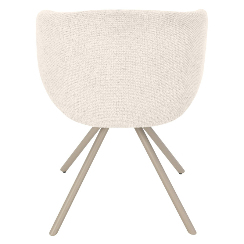 Praktickou stránku židle určuje otočný mechanismus s plynulým 360° pohybem. Díky němu se snadno přizpůsobí každodenním činnostem – ať už jde o stolování, práci u stolu nebo krátké posezení během odpočinku. Kovová čtyřramenná základna v béžovém provedení zajišťuje pevnost a stabilitu, přičemž svým subtilním vzhledem nenarušuje celkový design. Je to detail, který dodává nábytku moderní charakter a zároveň podporuje jeho odolnost.