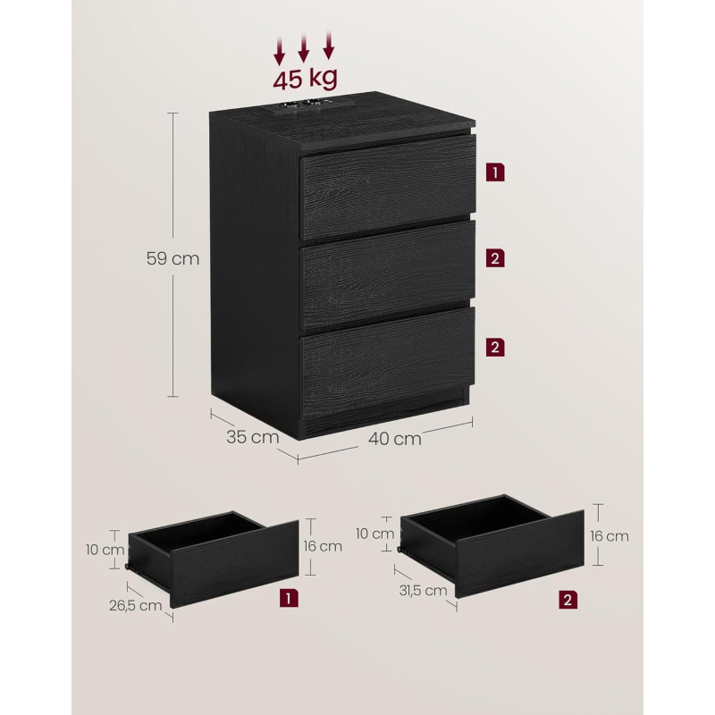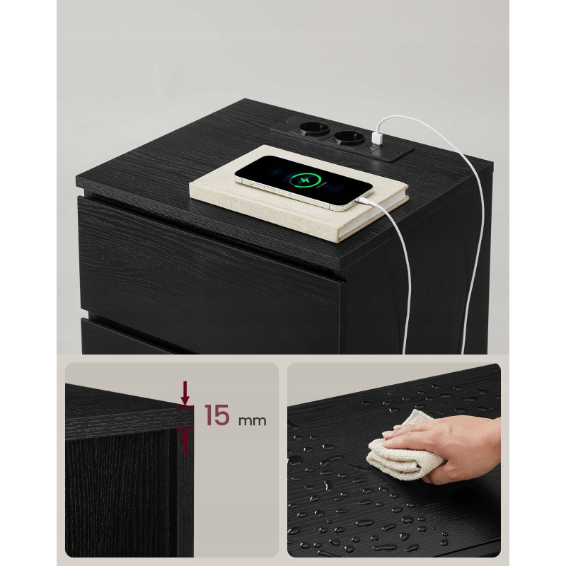 Produkt Sada 2 nočních stolků šuplíky černé se zásuvkou a USB porty 40x59x35 cm je v kategorii Noční stolky, ve které si můžete vybrat i další podobné zboží.Přejít do kategorie Noční stolky